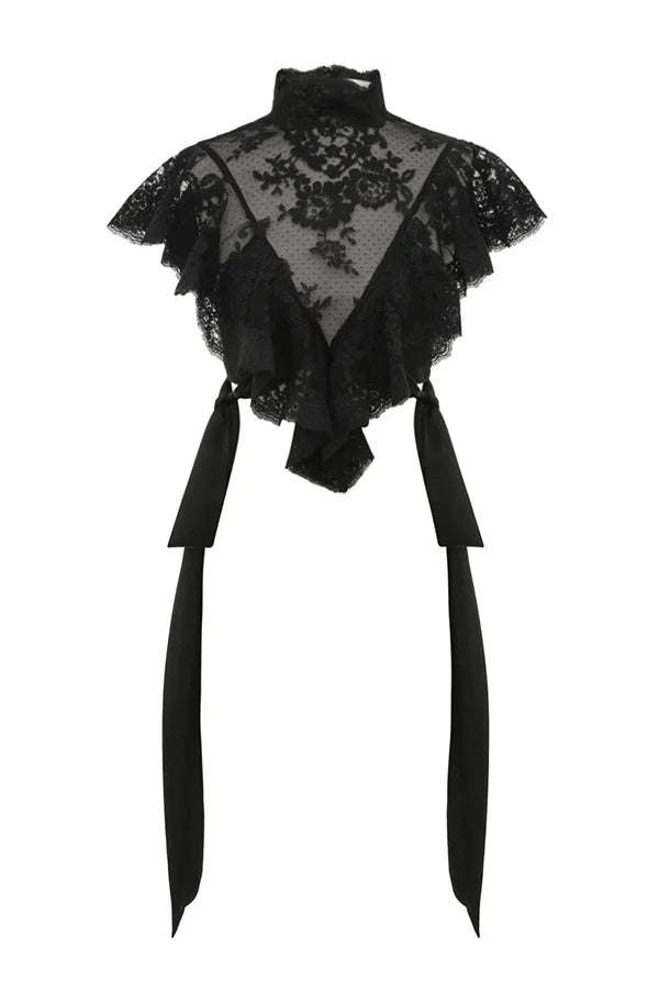 Top corto con volantes de encaje