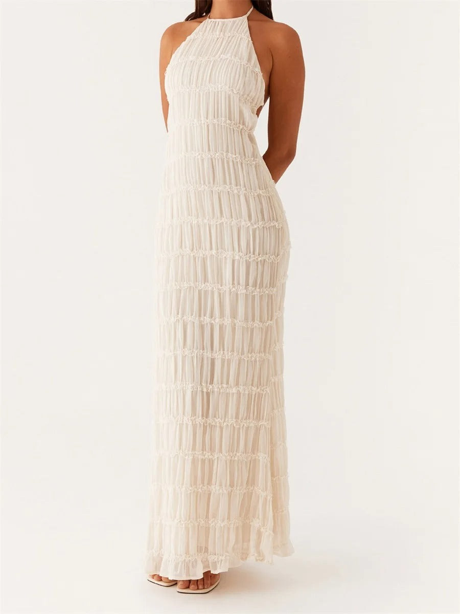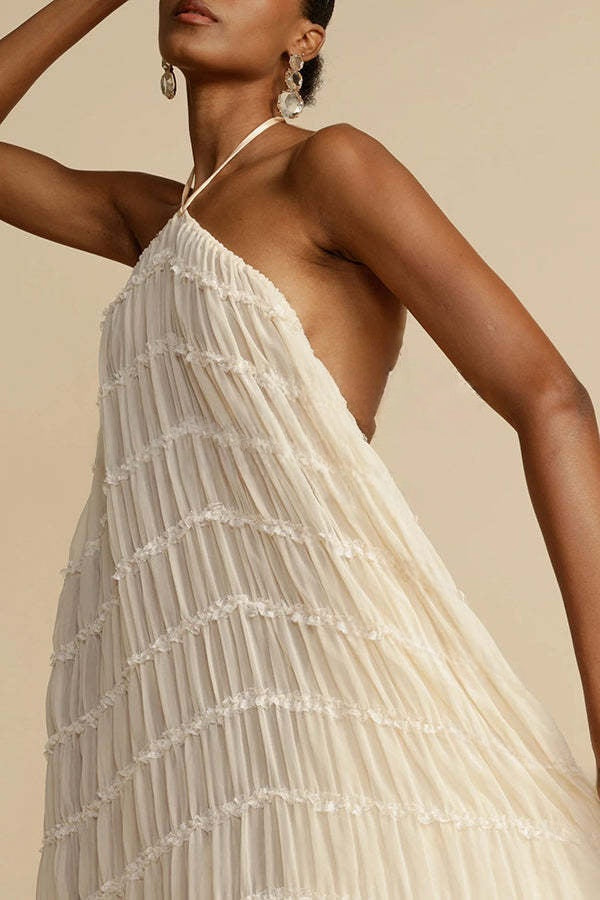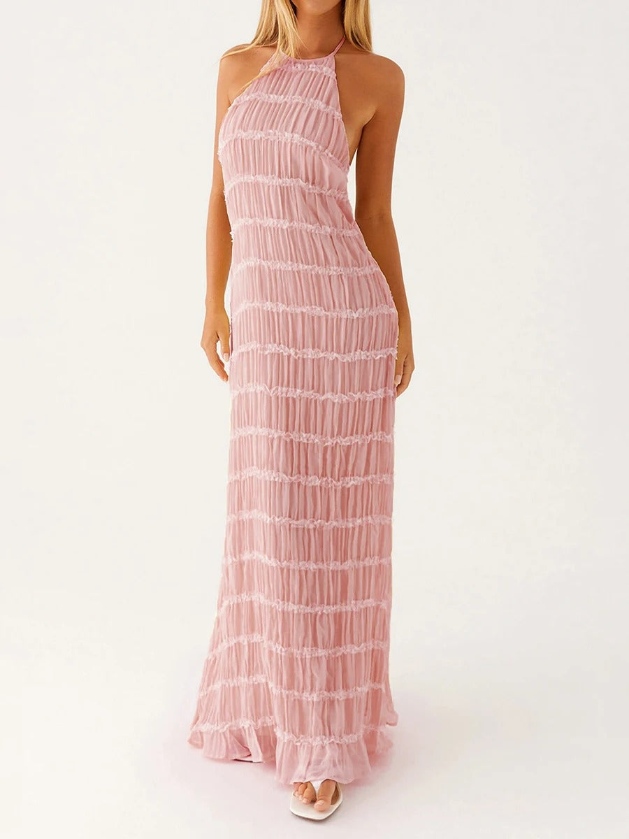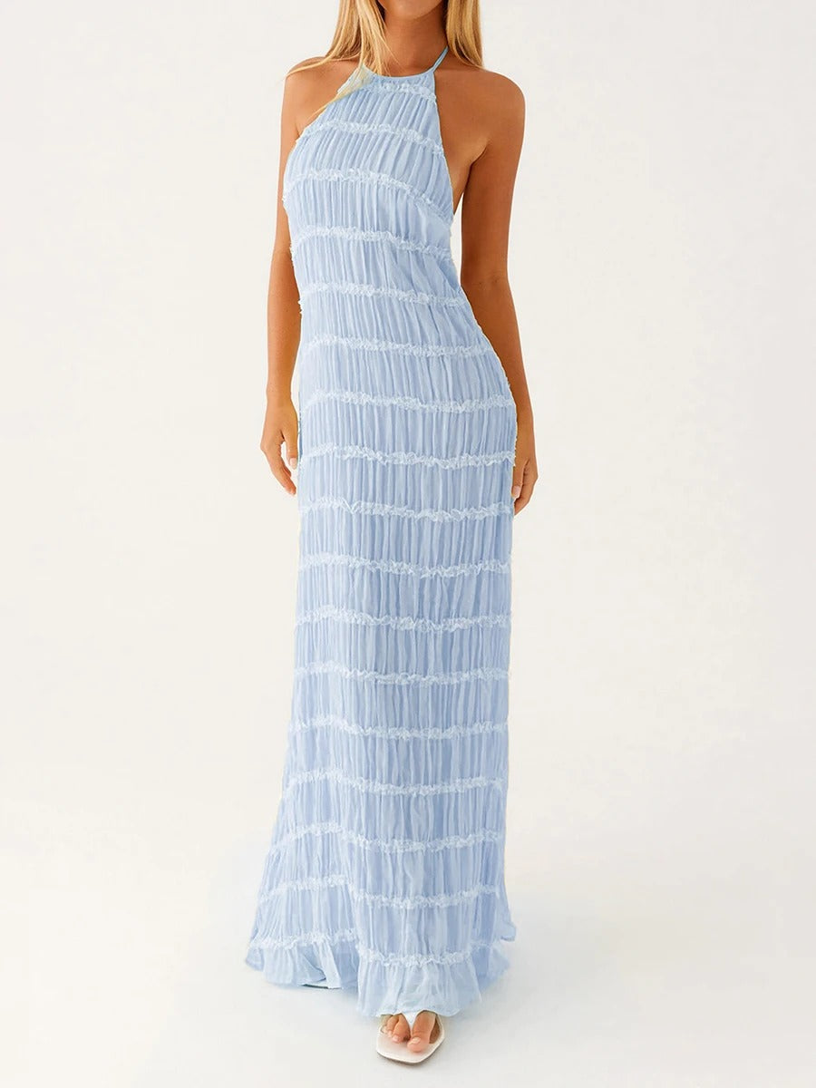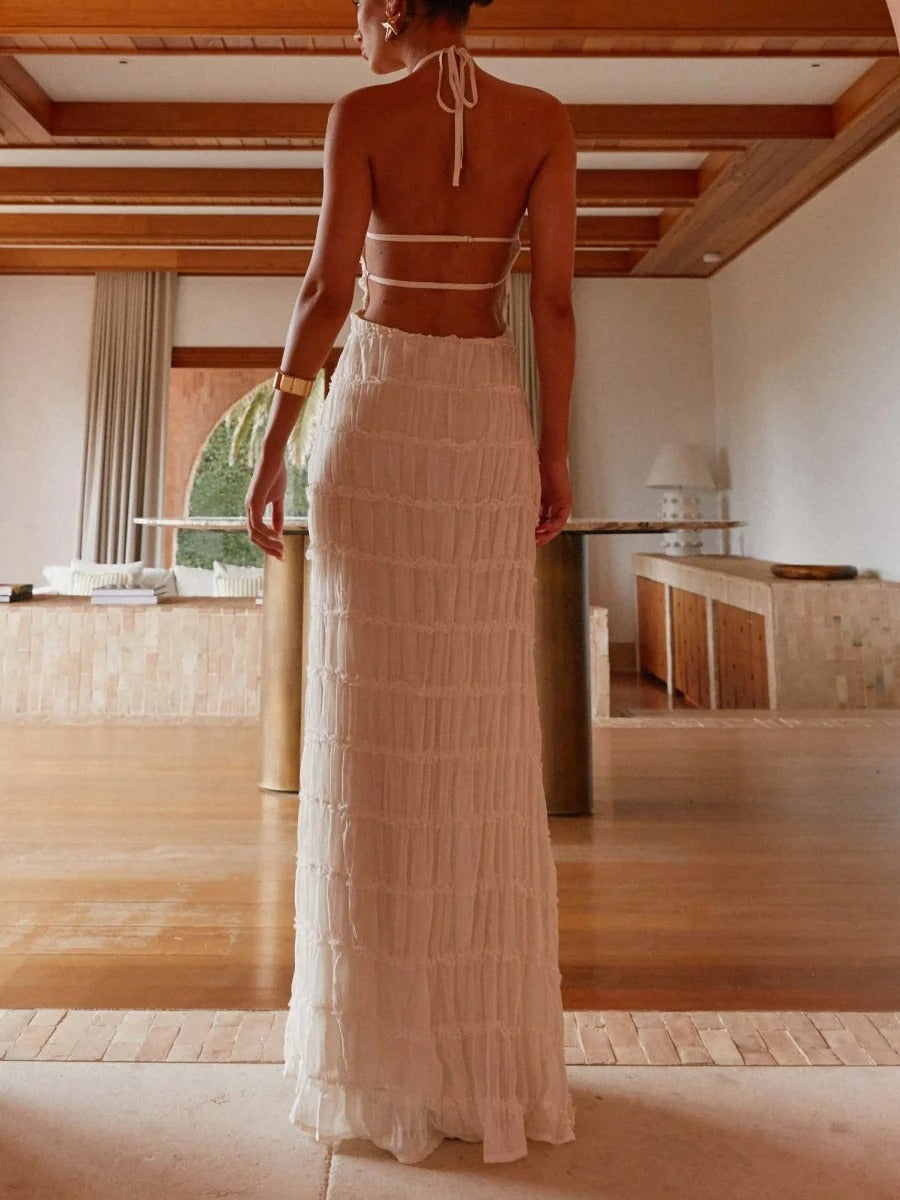 falda maxi plisada en capas con cintura de cordón