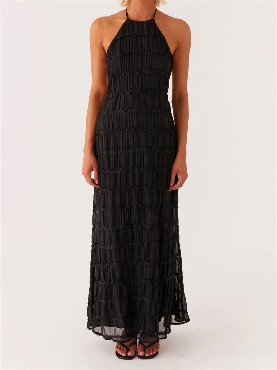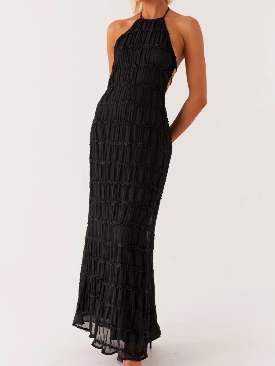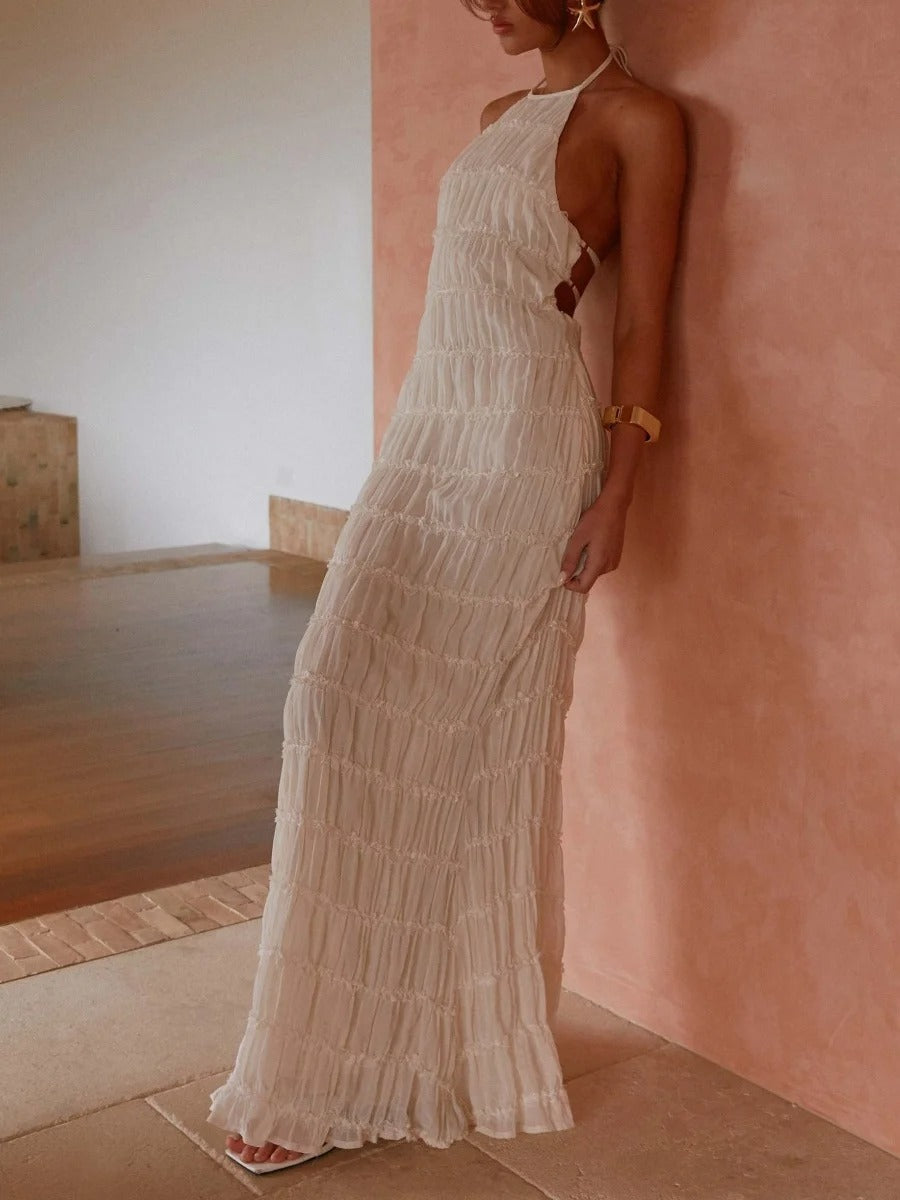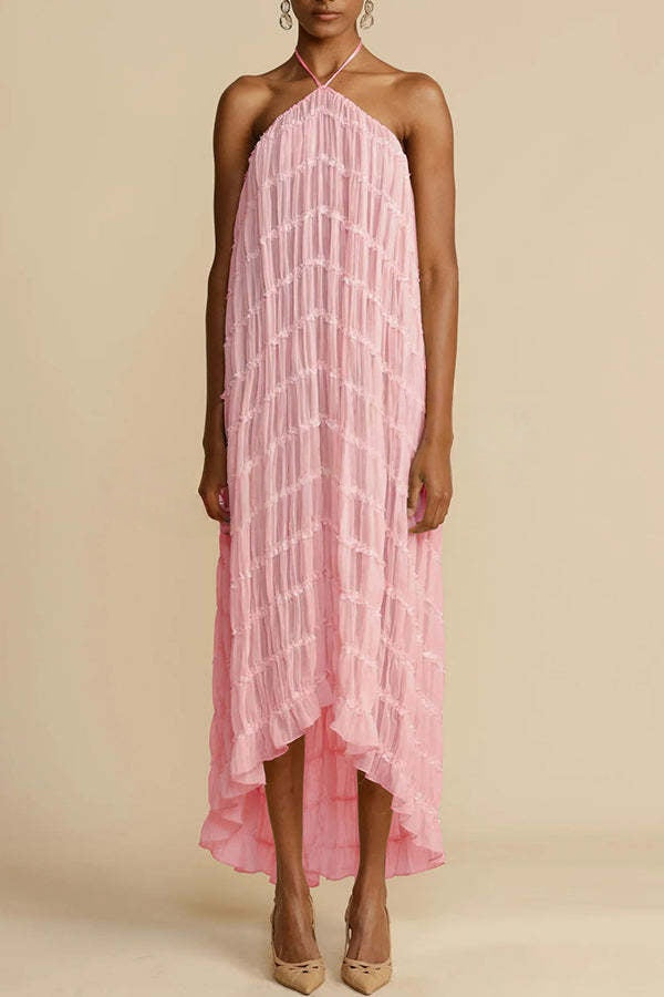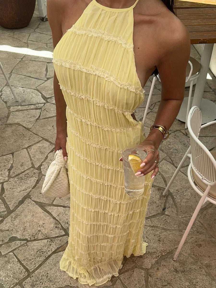 falda maxi plisada en capas con cintura de cordón